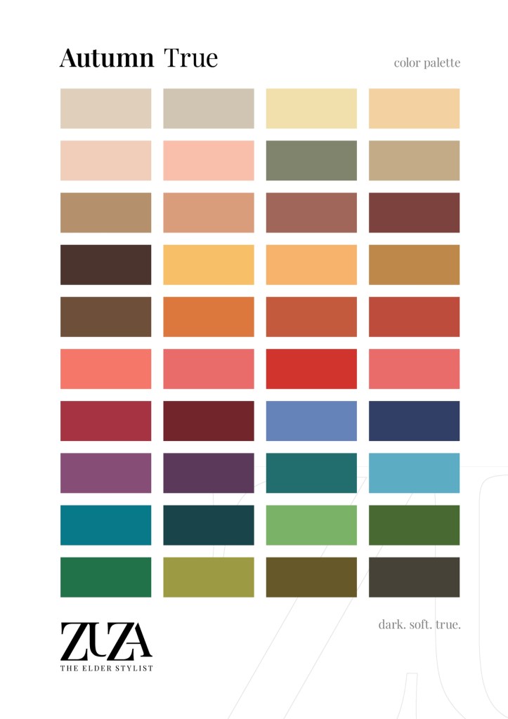 Kolory z tej palety są dla Ciebie, jeżeli Twoim głównym atrybutem kolorystycznym jest temperatura — kolory ciepłe w Twojej naturalnej kolorystyce (kolor skóry, włosów i oczu) są na tyle wyraźne, że inne atrybuty schodzą na drugi i trzeci plan: chromatyczność (przygaszone /nasycone) i walor (kolory jasne/ciemne).