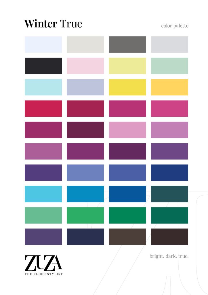 Kolory z tej palety są dla Ciebie, jeżeli Twoim głównym atrybutem kolorystycznym jest temperatura — kolory chłodne w Twojej naturalnej kolorystyce (kolor skóry, włosów i oczu) są na tyle wyraźne, że inne atrybuty schodzą na drugi i trzeci plan: chromatyczność (przygaszone /nasycone) i walor (kolory jasne/ciemne).
